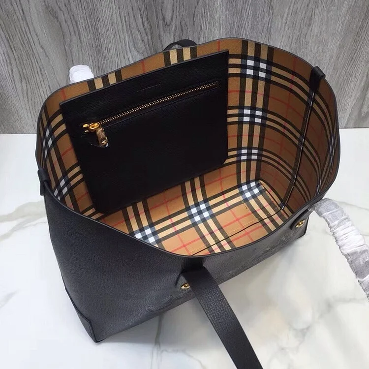 An open-top tote in supple embossed with an oversized bb crest. and bonded to our archival Vintage check.