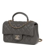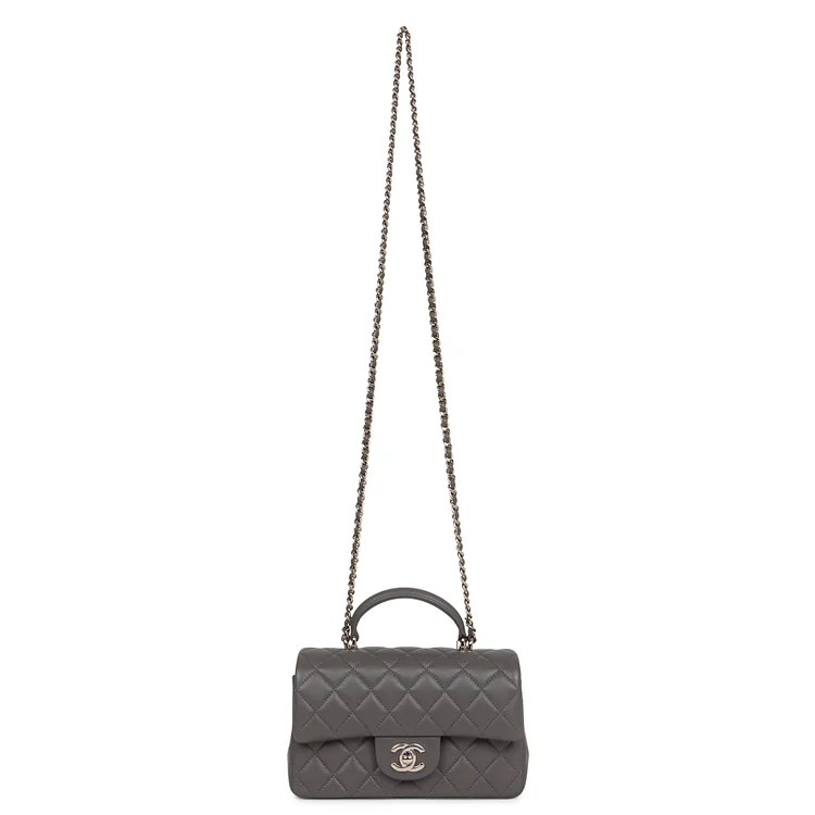 CC Mini Rectangular Flap Bag with Top Handle Dark Grey Lambskin Light Gold Hardware