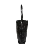 The interior is lined inblack fabric with one zip pocket on the rear wall.