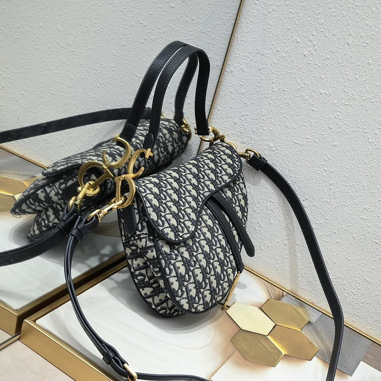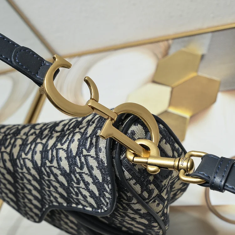 CHRISTIAN D Oblique Saddle Messenger Bag Blue Black