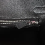 This Birkin is inBlack togo leather withpalladium hardware and has tonal stitching.front flap. two straps withcentertoggle closure. clochette with lock and two keys. and double rolled handles.