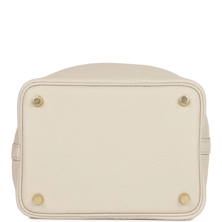 This Picotin is in Beton clemence leather withgold hardware and has tonal stitching with two top handles.