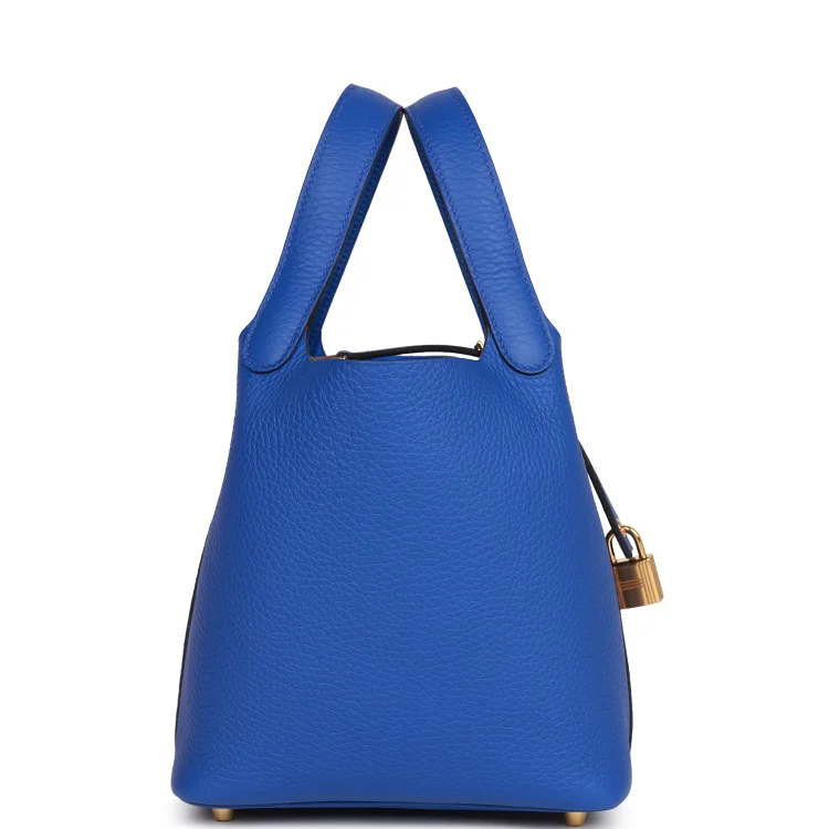 H Picotin Lock 18 Bleu Royal Clemence Gold Hardware