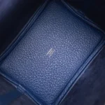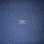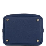 This Picotin Lock is inBleu Saphirmaurice leather withpalladium hardware and has tonal stitching with two top handles.
