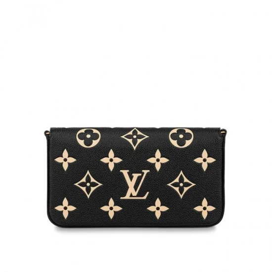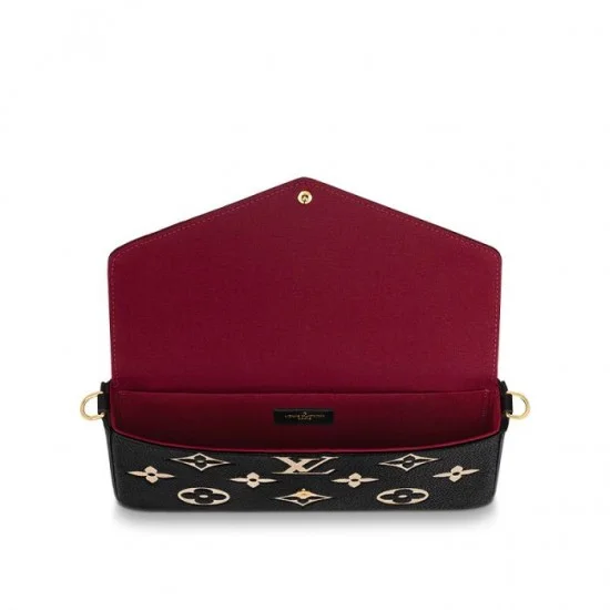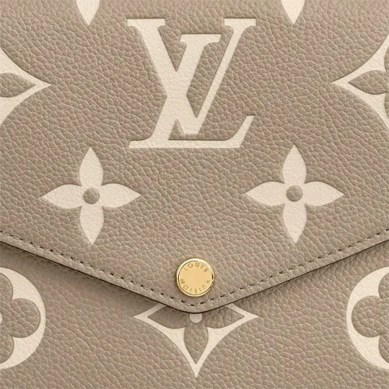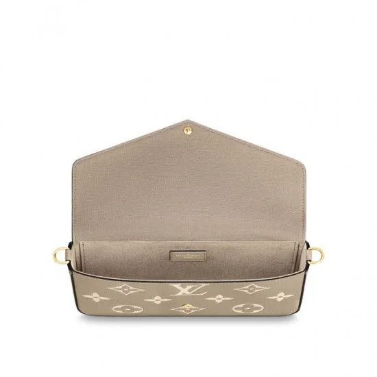 The Félicie Pochette is crafted from supple Monogram Empreinte leather. embossed with L-bag’s iconic Monogram pattern. The two-tone palette brings added refinement to this elegant and versatile design. which features a removable gold-tone chain that allows it to be carried on the shoulder or as a clutch. as well as two removable pockets.
