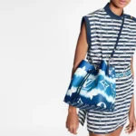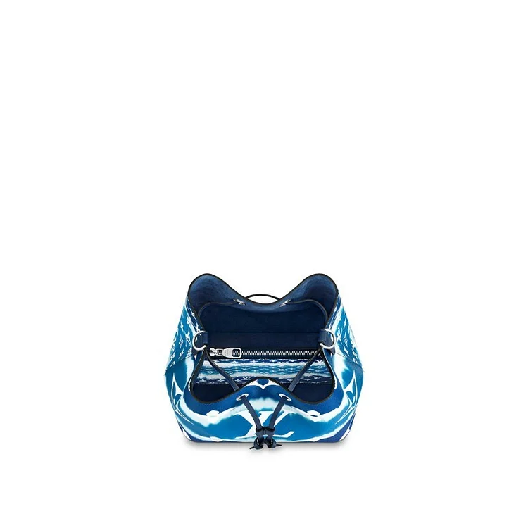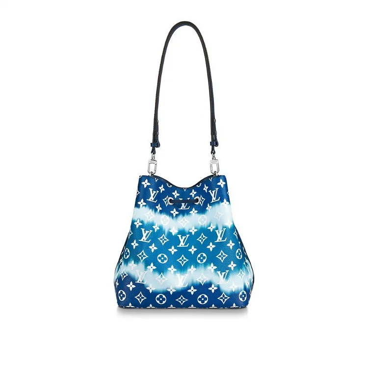 The Escale NéoNoé bucket bag is made of tie-dyed Monogram canvas. Its unique pattern is derived from the traditional Japanese shibori dyeing method of tying the fabric before dyeing. It is presented in the 2020 Spring/Summer handbags, shoes and ready-to-wear series. The detachable shoulder strap allows shoulder or crossbody options.