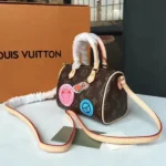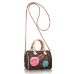 This ultra-feminine Nano Speedy in iconic Monogram canvas featuring Creative Director Nicolas Ghesquiere’s playful take on classic hotel stickers is the stylish way to carry your daily essentials. A perfect miniature version of the original Speedy bag. it’s very light yet easily fits your smartphone. credit cards and keys.