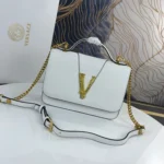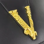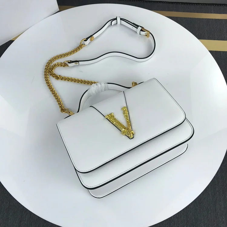 Debuting on the Fall-Winter 2019 runway. the Virtus bag takes its name from the Roman deity and symbolizes strength. courage. and character. Crafted in the finest quality leather. the shoulder bag boasts magnetic flap over closure. a top handle and an adjustable shoulder strap. A bold symbol of the brand’s aesthetic heritage. the central gold-tone metal Barocco letter V is embellished by acanthus leaves taken from Ve’s signature motif. The inside of the exceptional quality bag features a zipped and flat leather pockets.
