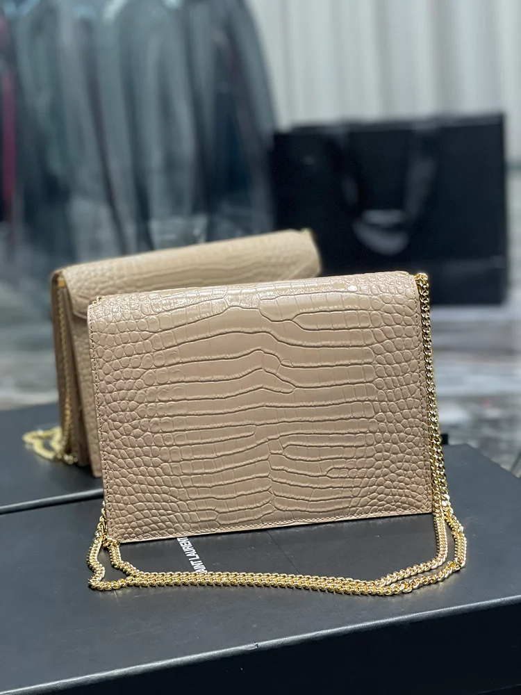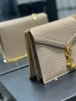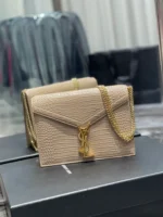 Y Cassandra Medium Chain Bag Dark Beige In Grain De Poudre Embossed For Women 8.6in/22cm Y 532750DND0J2721