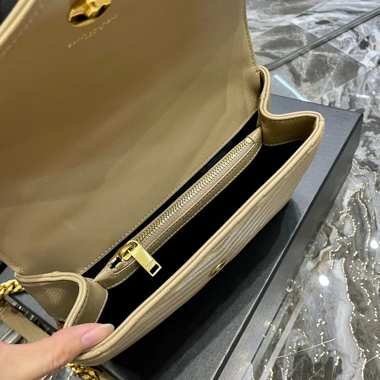 Y MONOGRAM BAG DECORATED WITH CHEVRON-QUILTED OVERSTITCHING AND METAL Y INITIALS. FEATURING A TOP HANDLE AND REMOVABLE CHAIN AND LEATHER SHOULDER STRAP. CAN BE WORN CROSSBODY.