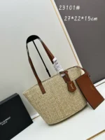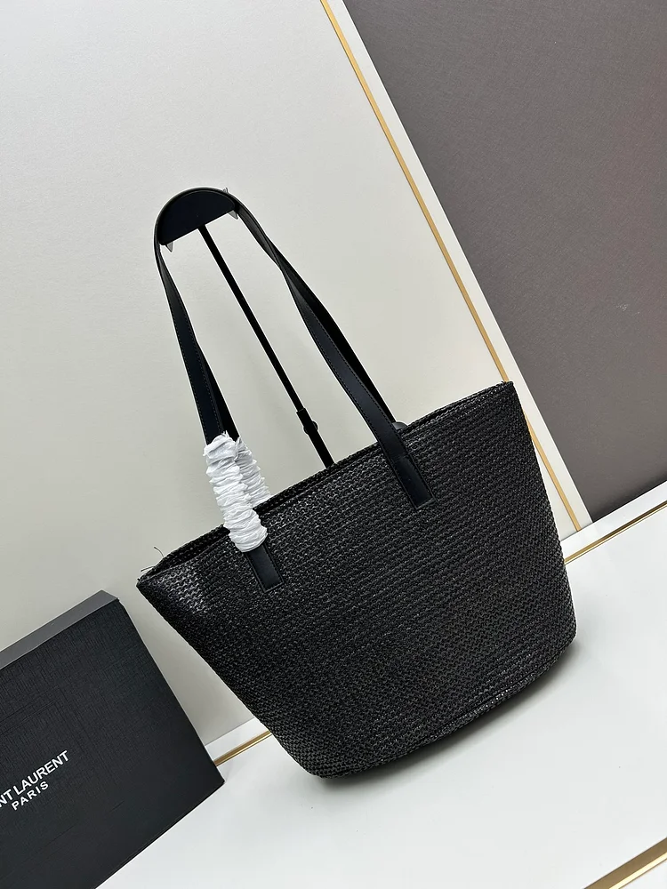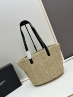 Yves Saint Laurent LE 37 raffia bag |||BUCKET BAG WITH LE CASSANDRE HOOK-AND-EYE CLOSURE IN BRAIDED RAFFIA AND VEGETABLE-TANNED LEATHER. The adjustable and detachable shoulder strap allows you to wear it in a variety of ways.